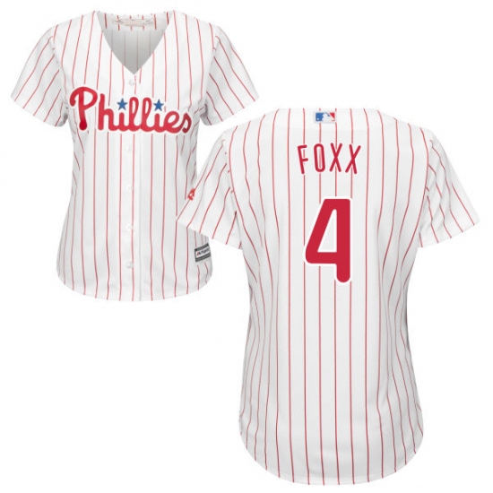 Home>MLB>Philadelphia Phillies>Jimmy Foxx>Women's Majestic Philadelphia Phillies #4 Jimmy Foxx Authentic White/Red Strip Home Cool Base MLB Jersey