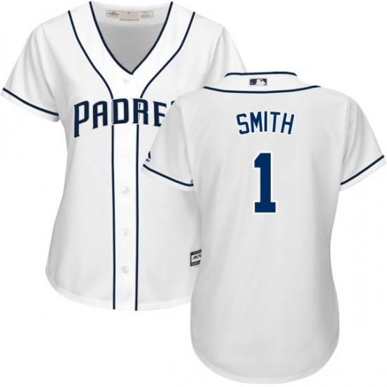 Home>MLB>San Diego Padres>Ozzie Smith>Women's Majestic San Diego Padres #1 Ozzie Smith Replica White Home Cool Base MLB Jersey