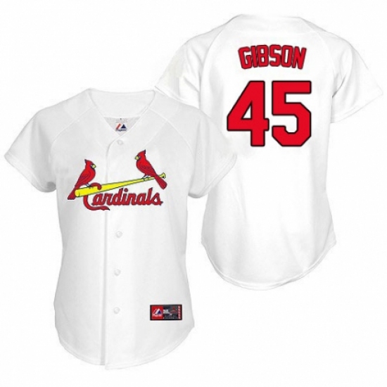 Women's Majestic St. Louis Cardinals #45 Bob Gibson Replica White Home MLB Jersey