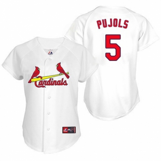 >Women's Majestic St. Louis Cardinals #5 Albert Pujols Authentic White MLB Jersey