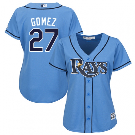 Home>MLB>Tampa Bay Rays>Carlos Gomez>Women's Majestic Tampa Bay Rays #27 Carlos Gomez Authentic Light Blue Alternate 2 Cool Base MLB Jersey