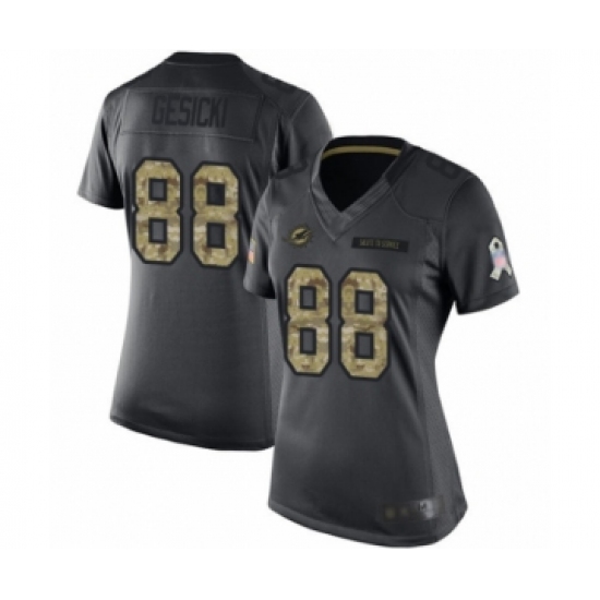 Women's Miami Dolphins #88 Mike Gesicki Limited Black 2016 Salute to Service Football Jersey