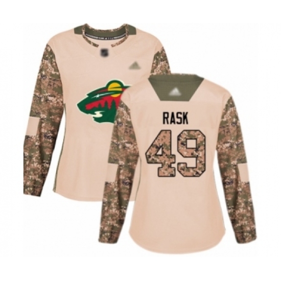 >Women's Minnesota Wild #49 Victor Rask Authentic Camo Veterans Day Practice Hockey Jersey