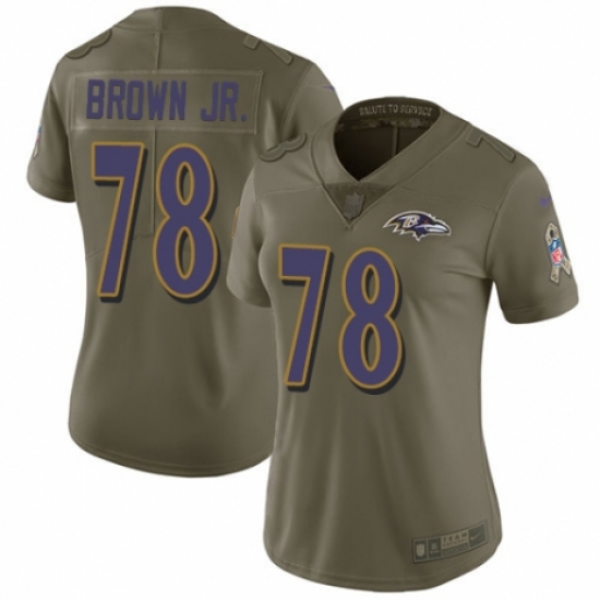 Women's Nike Baltimore Ravens #78 Orlando Brown Jr. Limited Olive 2017 Salute to Service NFL Jersey