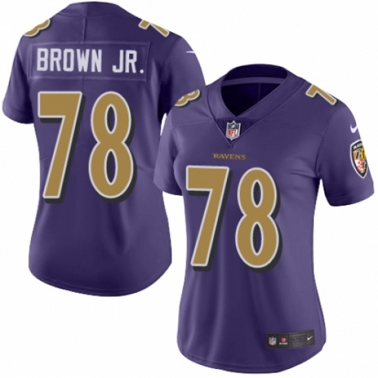>Women's Nike Baltimore Ravens #78 Orlando Brown Jr. Limited Purple Rush Vapor Untouchable NFL Jersey