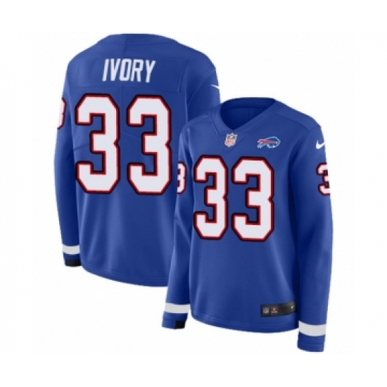 Women's Nike Buffalo Bills #33 Chris Ivory Limited Royal Blue Therma Long Sleeve NFL Jersey