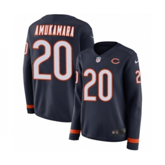 >Women's Nike Chicago Bears #20 Prince Amukamara Limited Navy Blue Therma Long Sleeve NFL Jersey