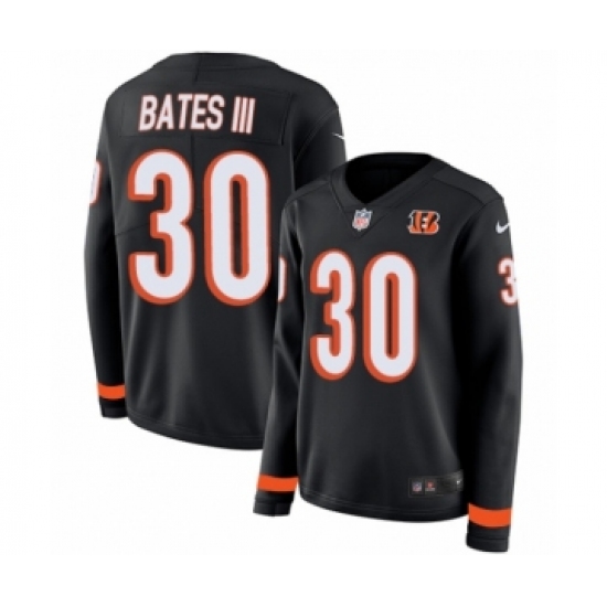 >Women's Nike Cincinnati Bengals #30 Jessie Bates III Limited Black Therma Long Sleeve NFL Jersey