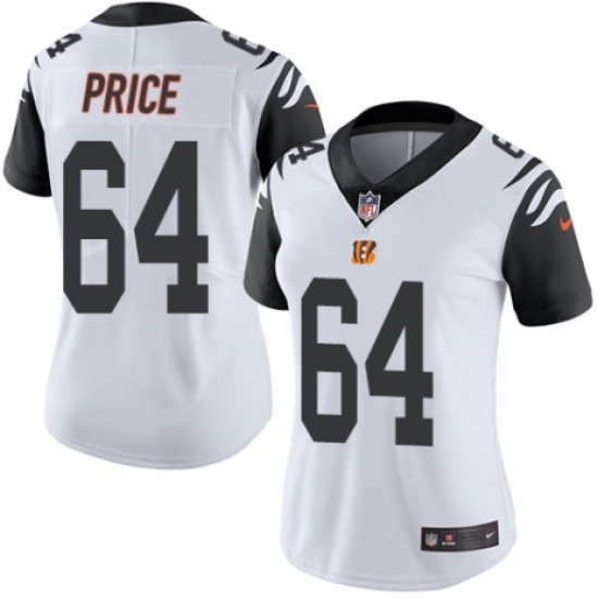 >Women's Nike Cincinnati Bengals #64 Billy Price Limited White Rush Vapor Untouchable NFL Jersey