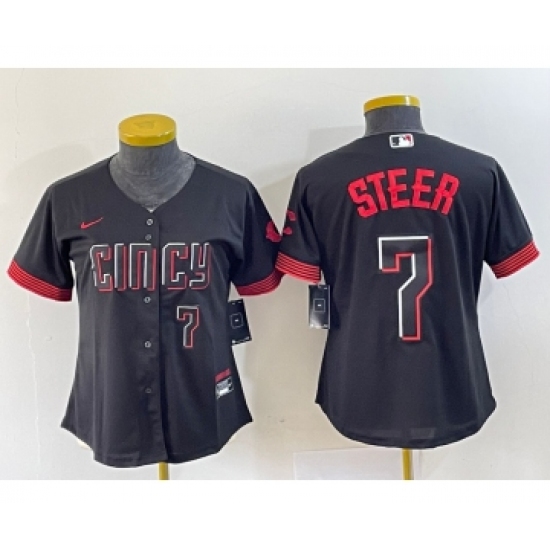 Women's Nike Cincinnati Reds #7 Spencer Steer Black 2023 City Connect Cool Base Stitched Baseball Jersey