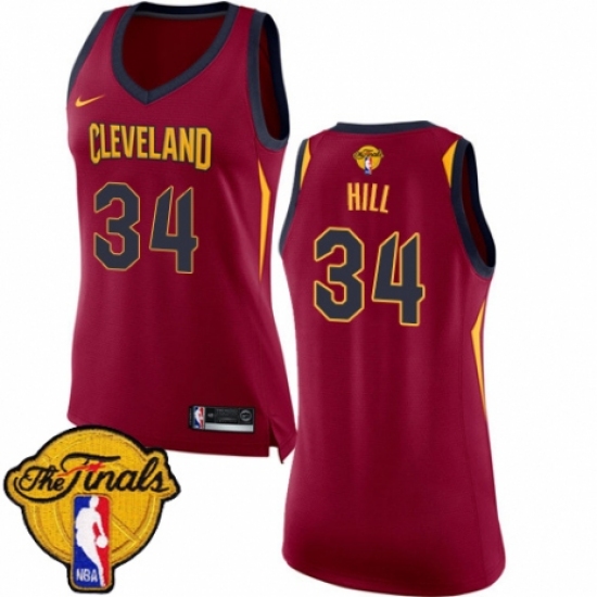 >Women's Nike Cleveland Cavaliers #34 Tyrone Hill Swingman Maroon 2018 NBA Finals Bound NBA Jersey - Icon Edition