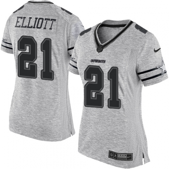 Home>NFL>Dallas Cowboys>Ezekiel Elliott>Women's Nike Dallas Cowboys #21 Ezekiel Elliott Limited Gray Gridiron II NFL Jersey