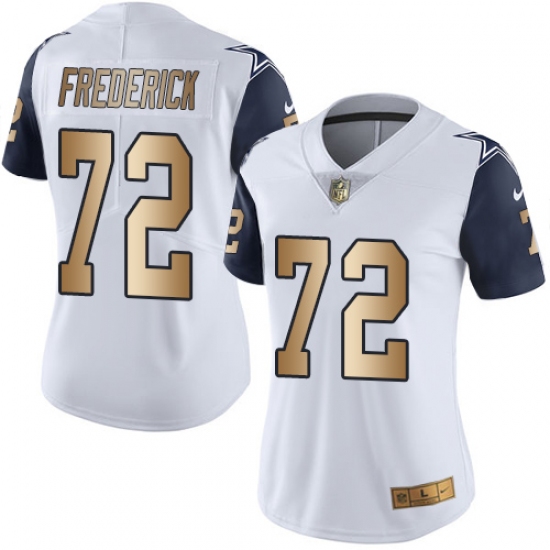 Home>NFL>Dallas Cowboys>Travis Frederick>Women's Nike Dallas Cowboys #72 Travis Frederick Limited White/Gold Rush NFL Jersey