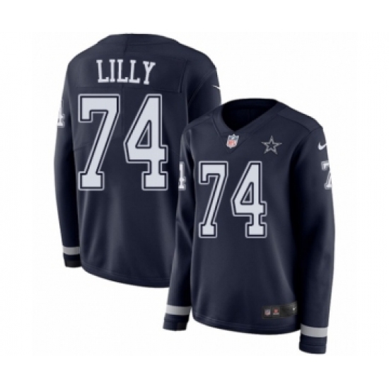 >Women's Nike Dallas Cowboys #74 Bob Lilly Limited Navy Blue Therma Long Sleeve NFL Jersey