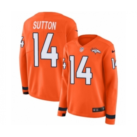 >Women's Nike Denver Broncos #14 Courtland Sutton Limited Orange Therma Long Sleeve NFL Jersey