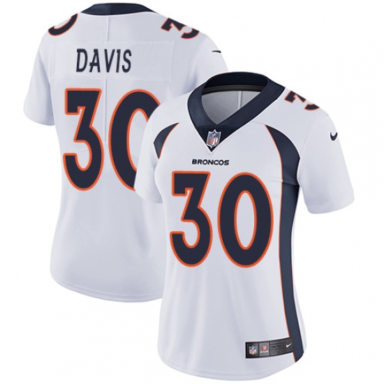 Home>NFL>Denver Broncos>Terrell Davis>Women's Nike Denver Broncos #30 Terrell Davis White Vapor Untouchable Limited Player NFL Jersey