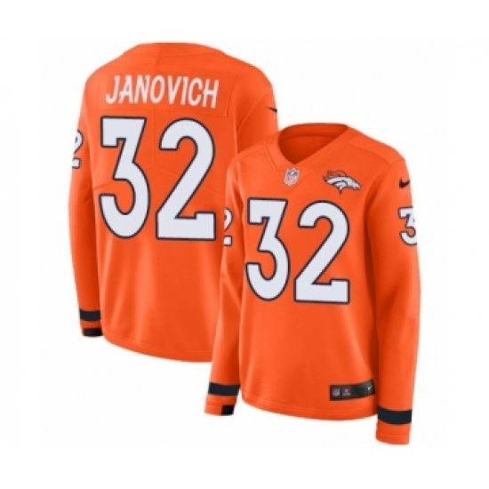 Women's Nike Denver Broncos #32 Andy Janovich Limited Orange Therma Long Sleeve NFL Jersey