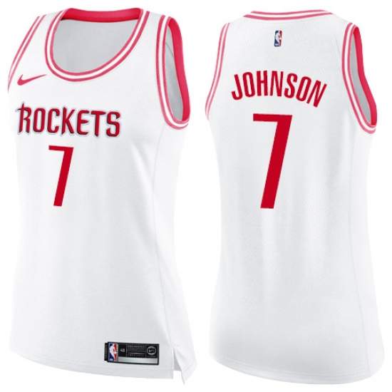 Home>NBA>Houston Rockets>Joe Johnson>Women's Nike Houston Rockets #7 Joe Johnson Swingman White/Pink Fashion NBA Jersey