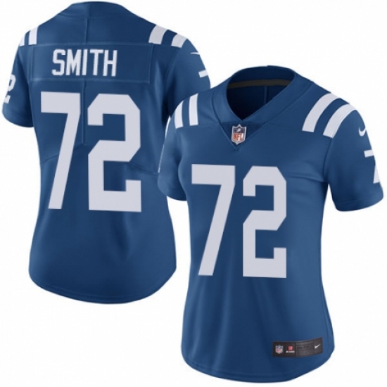 >Women's Nike Indianapolis Colts #72 Braden Smith Royal Blue Team Color Vapor Untouchable Limited Player NFL Jersey