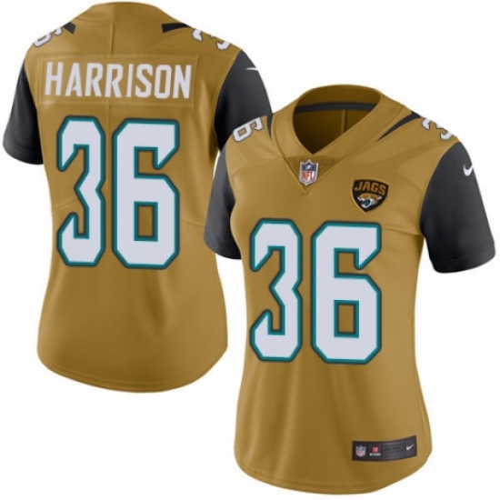 >Women's Nike Jacksonville Jaguars #36 Ronnie Harrison Limited Gold Rush Vapor Untouchable NFL Jersey