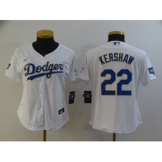 >Women's Nike Los Angeles Dodgers #22 Clayton Kershaw White Champions Authentic Jersey