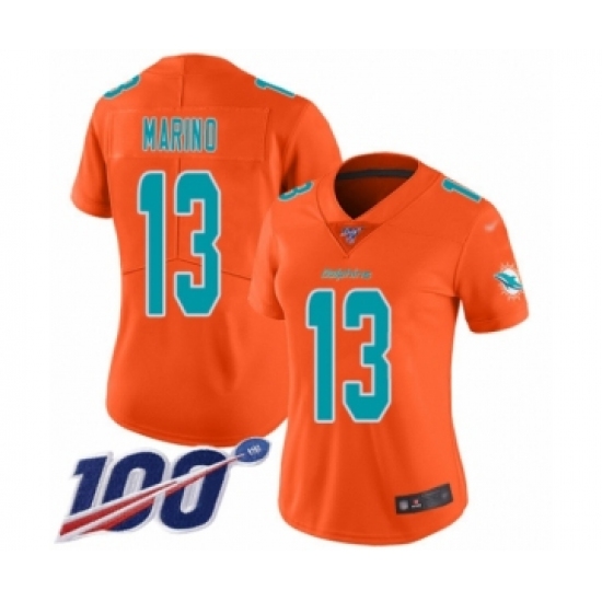 >Women's Nike Miami Dolphins #13 Dan Marino Limited Orange Inverted Legend 100th Season NFL Jersey