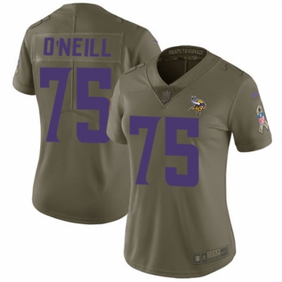 >Women's Nike Minnesota Vikings #75 Brian O'Neill Limited Olive 2017 Salute to Service NFL Jersey