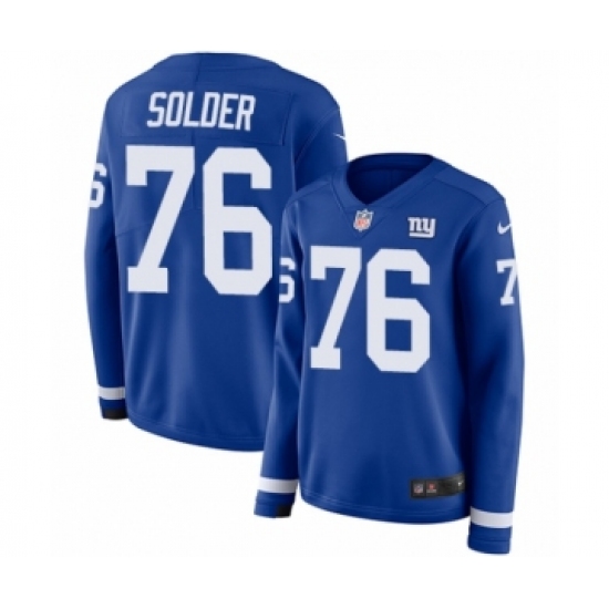 Women's Nike New York Giants #76 Nate Solder Limited Royal Blue Therma Long Sleeve NFL Jersey