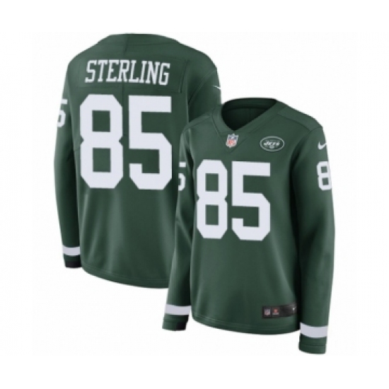 >Women's Nike New York Jets #85 Neal Sterling Limited Green Therma Long Sleeve NFL Jersey