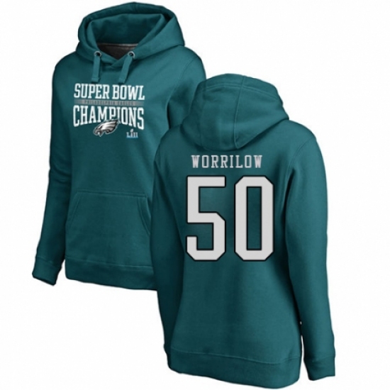 Women's Nike Philadelphia Eagles #50 Paul Worrilow Green Super Bowl LII Champions Pullover Hoodie
