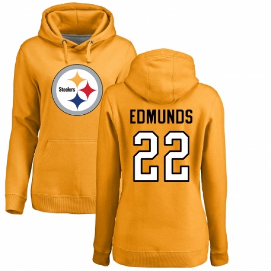 >Women's Nike Pittsburgh Steelers #22 Terrell Edmunds Gold Name & Number Logo Pullover Hoodie