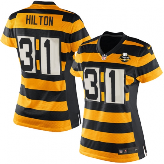 Home>NFL>Pittsburgh Steelers>Mike Hilton>Women's Nike Pittsburgh Steelers #31 Mike Hilton Limited Yellow/Black Alternate 80TH Anniversary Throwback NFL Jersey