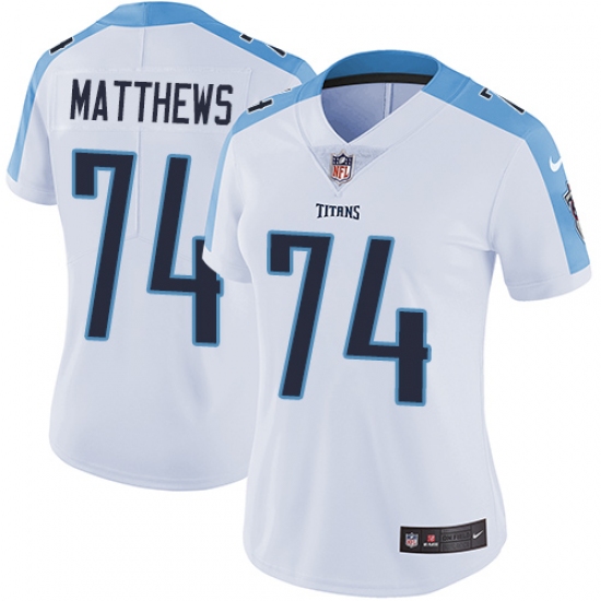 Women's Nike Tennessee Titans #74 Bruce Matthews White Vapor Untouchable Limited Player NFL Jersey