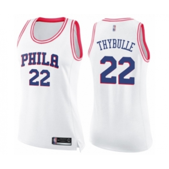 Women's Philadelphia 76ers #22 Mattise Thybulle Swingman White Pink Fashion Basketball Jersey