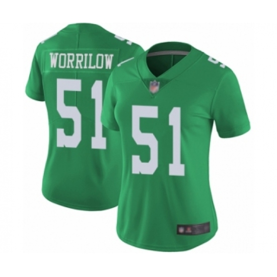 >Women's Philadelphia Eagles #51 Paul Worrilow Limited Green Rush Vapor Untouchable Football Jersey