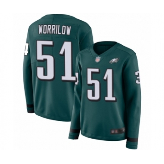 Women's Philadelphia Eagles #51 Paul Worrilow Limited Green Therma Long Sleeve Football Jersey