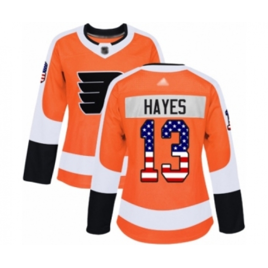 Women's Philadelphia Flyers #13 Kevin Hayes Authentic Orange USA Flag Fashion Hockey Jersey