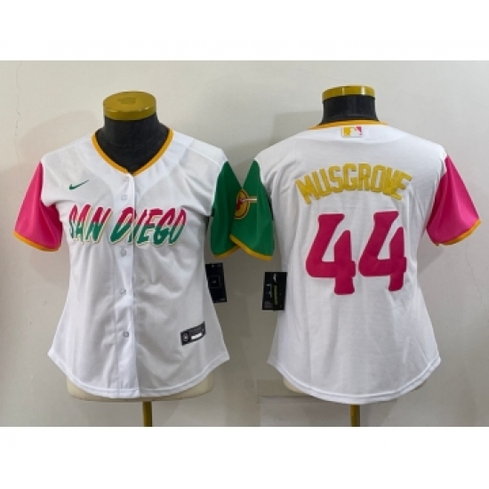 >Women's San Diego Padres #44 Joe Musgrove White 2022 City Connect Cool Base Stitched Jersey