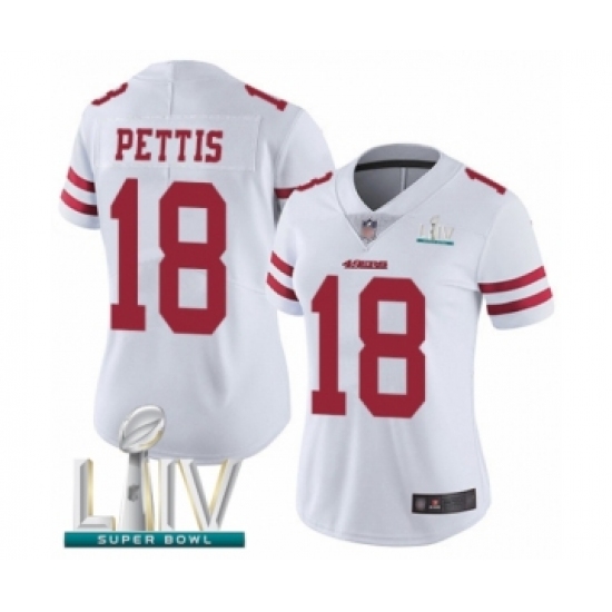 Women's San Francisco 49ers #18 Dante Pettis White Vapor Untouchable Limited Player Super Bowl LIV Bound Football Jersey