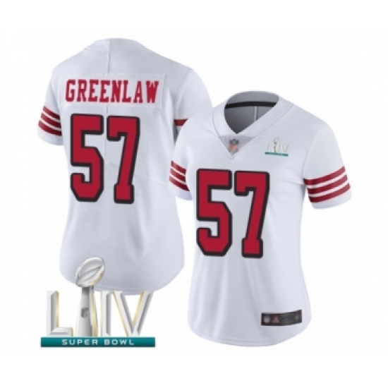 Women's San Francisco 49ers #57 Dre Greenlaw Limited White Rush Vapor Untouchable Super Bowl LIV Bound Football Jersey