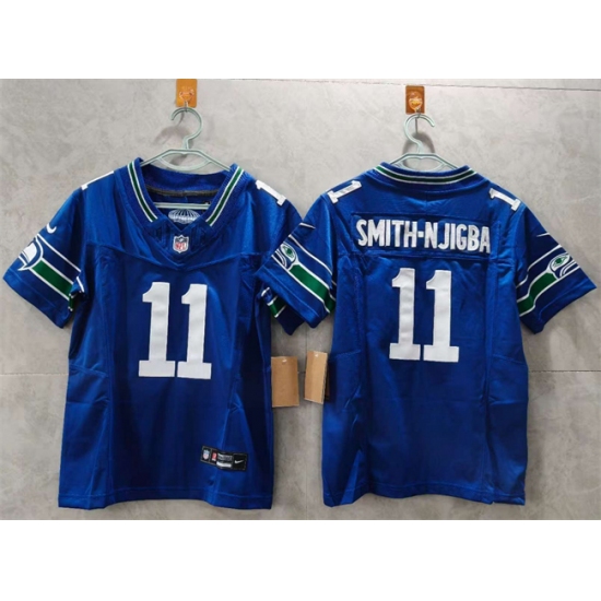 >Women's Seattle Seahawks #11 Jaxon Smith-Njigba Royal 2024 F.U.S.E Throwback Vapor Limited Stitched Football Jersey(Run Small)