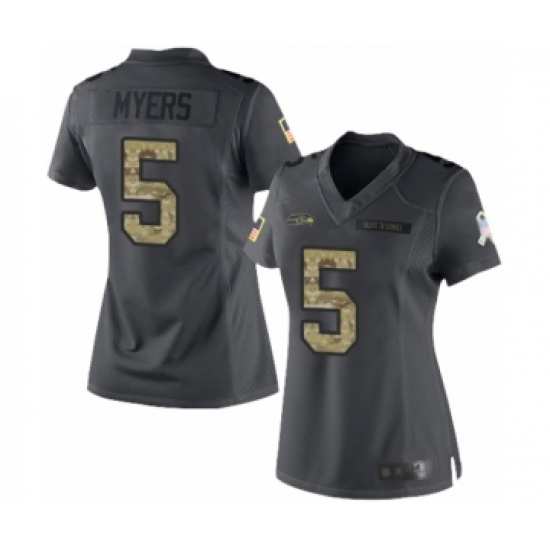 >Women's Seattle Seahawks #5 Jason Myers Limited Black 2016 Salute to Service Football Jersey