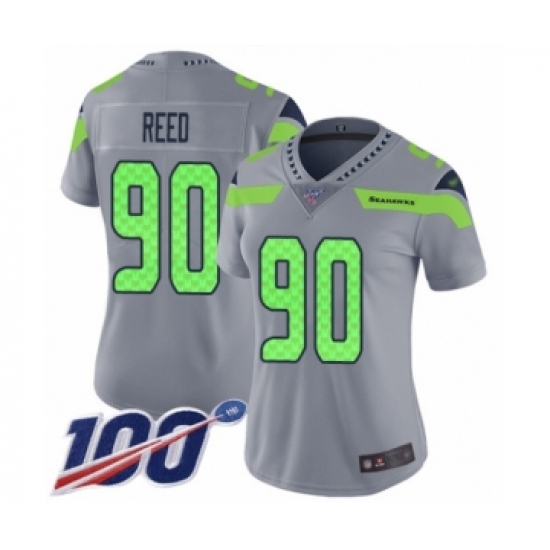 >Women's Seattle Seahawks #90 Jarran Reed Limited Silver Inverted Legend 100th Season Football Jersey