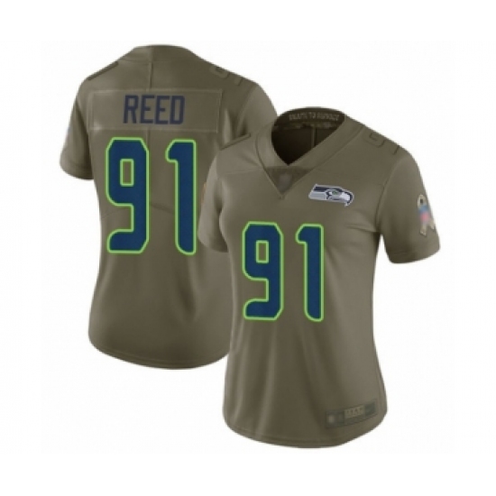Women's Seattle Seahawks #91 Jarran Reed Navy Blue Team Color Vapor Untouchable Limited Player 100th Season Football Jersey