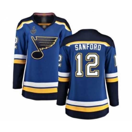 >Women's St. Louis Blues #12 Zach Sanford Fanatics Branded Royal Blue Home Breakaway 2019 Stanley Cup Final Bound Hockey Jersey