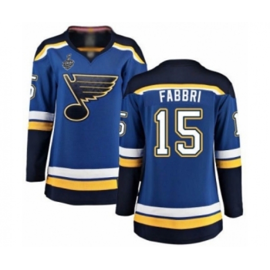 >Women's St. Louis Blues #15 Robby Fabbri Fanatics Branded Royal Blue Home Breakaway 2019 Stanley Cup Final Bound Hockey Jersey