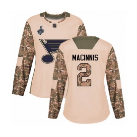 Women's St. Louis Blues #2 Al Macinnis Authentic Camo Veterans Day Practice 2019 Stanley Cup Final Bound Hockey Jersey