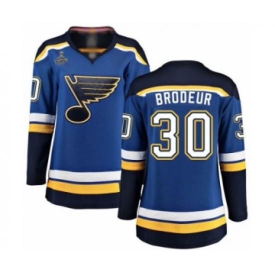 Women's St. Louis Blues #30 Martin Brodeur Fanatics Branded Royal Blue Home Breakaway 2019 Stanley Cup Champions Hockey Jersey