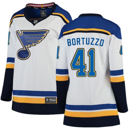 Women's St. Louis Blues #41 Robert Bortuzzo Fanatics Branded White Away Breakaway NHL Jersey
