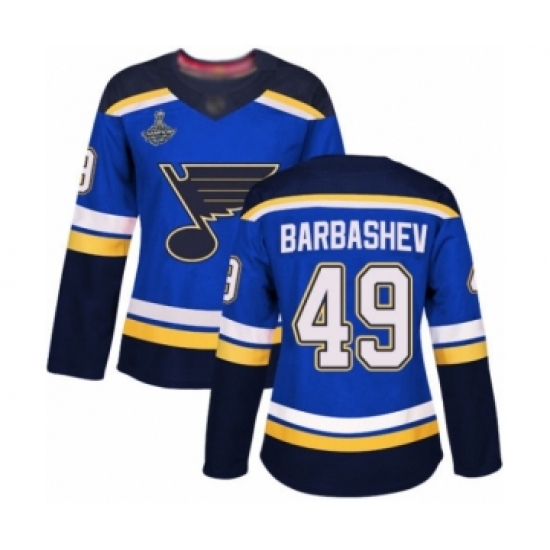 Women's St. Louis Blues #49 Ivan Barbashev Authentic Royal Blue Home 2019 Stanley Cup Champions Hockey Jersey